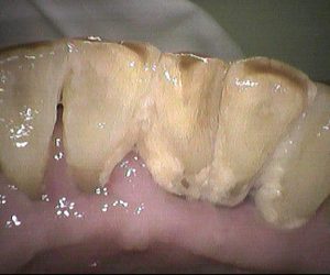 今日のクリーニングです。 クリーニング前 クリーニング後 これは右下の奥歯の内側の写真です。 プラークが特に根元あたりに多く、歯ぐきは腫れていて 歯の […]