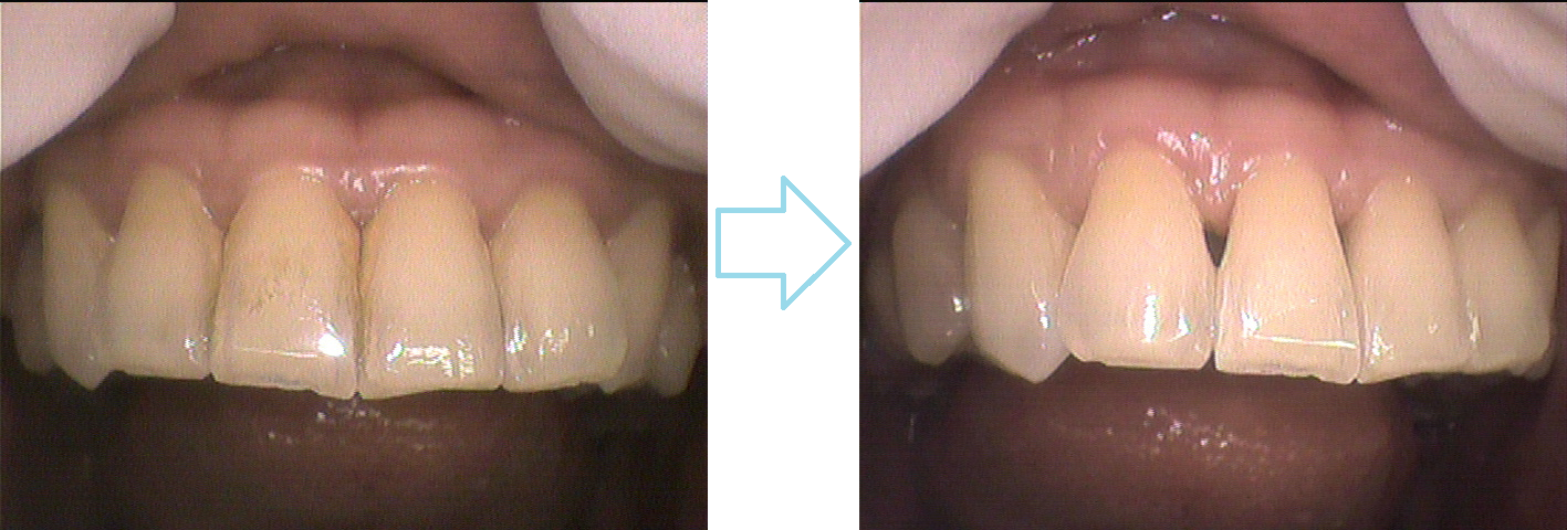 歯と歯の間には歯石が付着しており、表面にはすこしステイン(着色)もついていました。