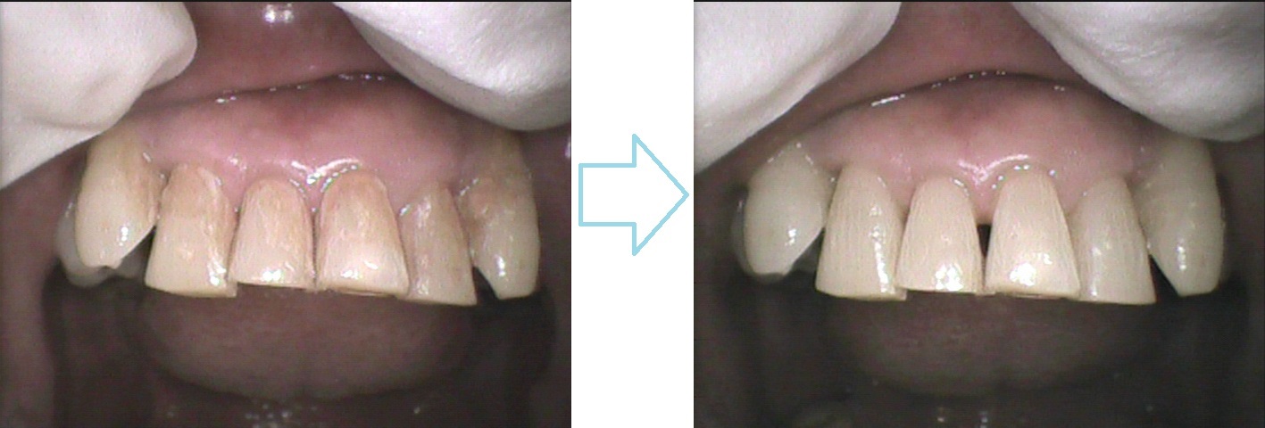 クリーニングして歯石やステインを除去し、とてもきれいになりました✨