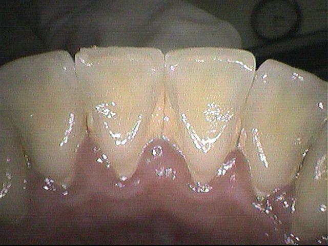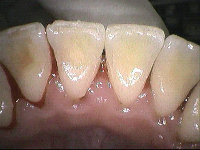 下の前歯の間から根元にかけて歯石が多くついていました。